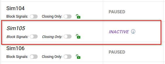 NinjaTrader Account Management monitor marked inactive