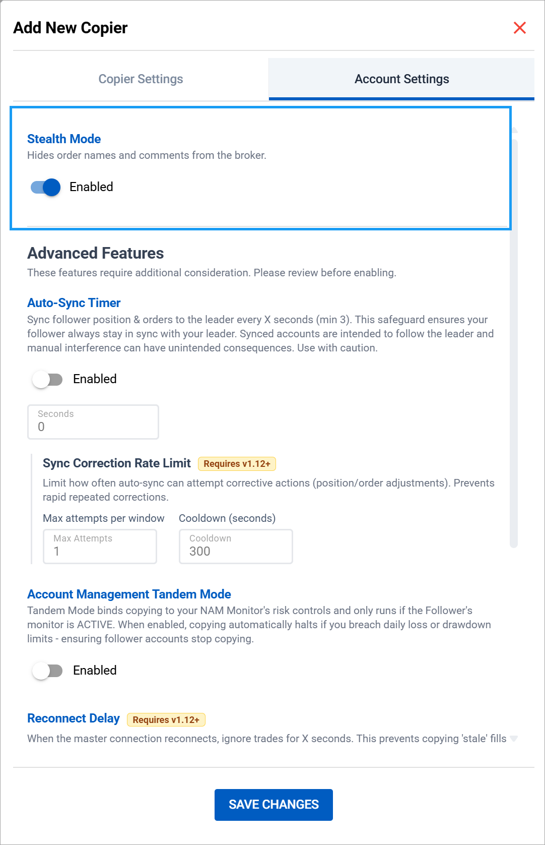 Regardless of whether Stealth Mode is on or off, CrossTrade maintains internal order mapping that persists through disconnections and NinjaTrader restarts. If your connection drops or NT8 crashes, the copier restores order relationships upon reconnection so synchronization can resume without manual intervention.