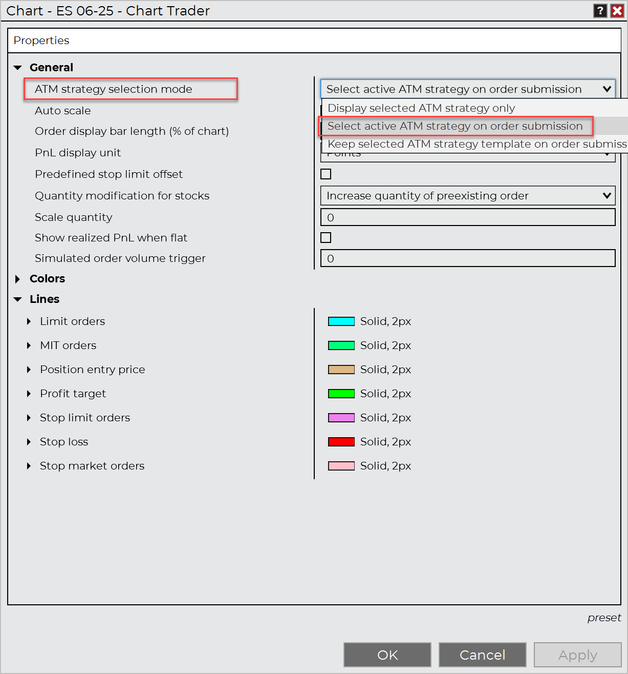 \ To resolve: right click on your Chart Trader and select Properties. You will see this window: